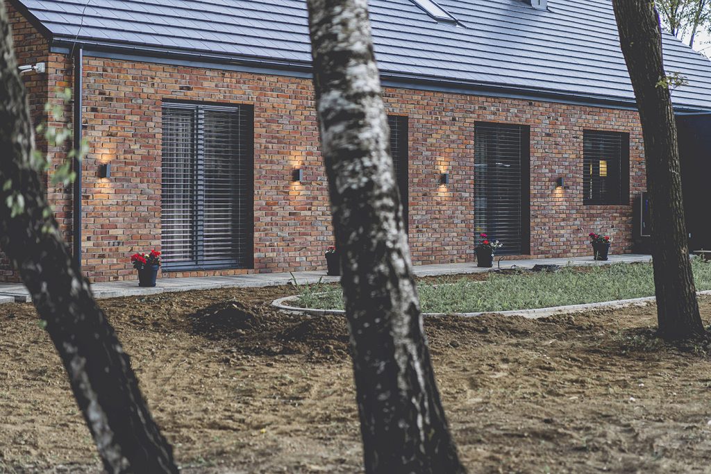 Ukryte rynny to detal, który dodaje nowoczesności tradycyjnej formie budynku. Pozwalają zachować czystą, uporządkowaną bryłę bez widocznych elementów technicznych na elewacji. To subtelne rozwiązanie podkreśla charakter projektu domu ceglanego i podnosi jego estetyczną jakość.
